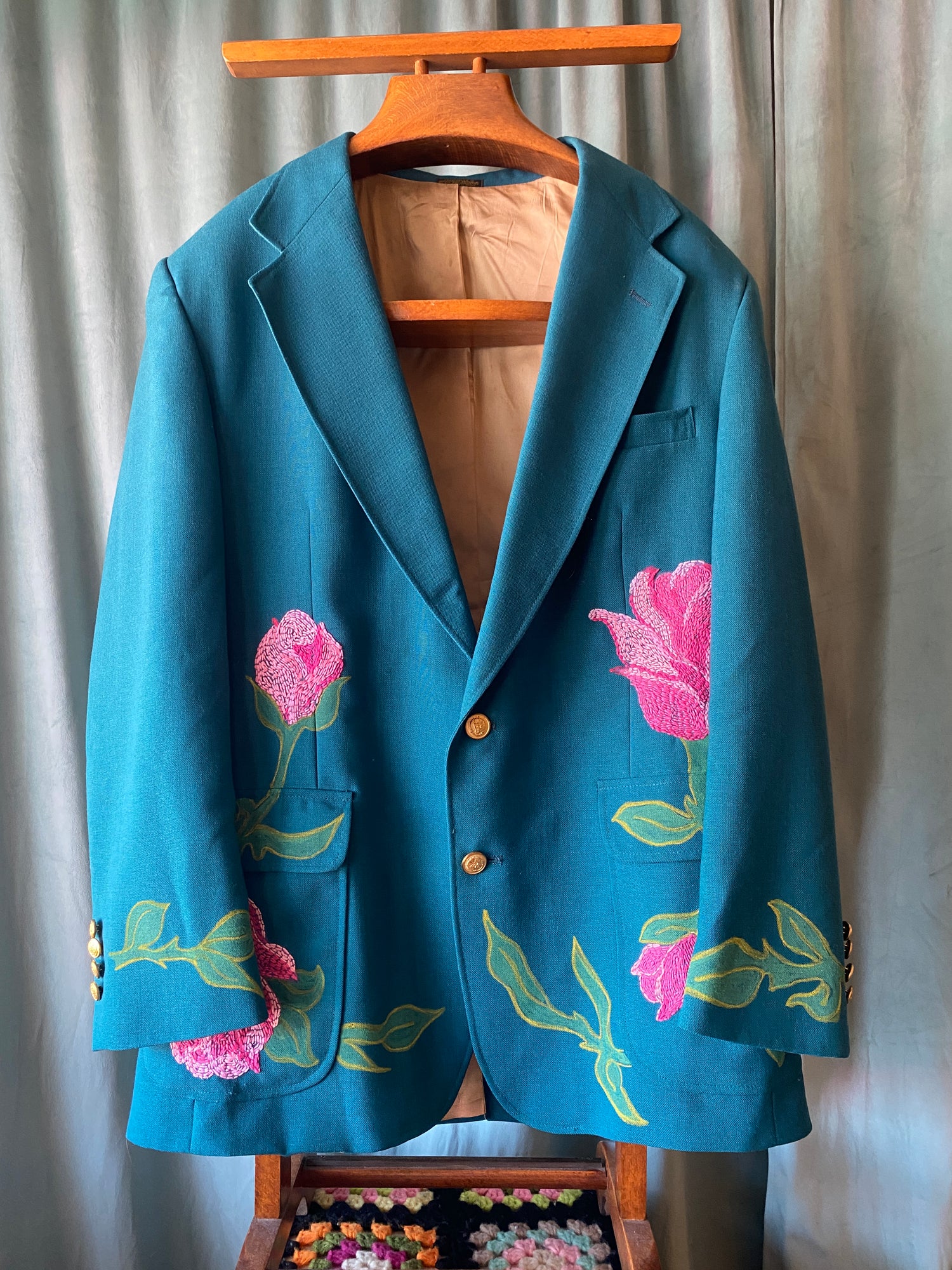 1960's Linen Jacket Remade with Hand-Embroidered "Virginia"