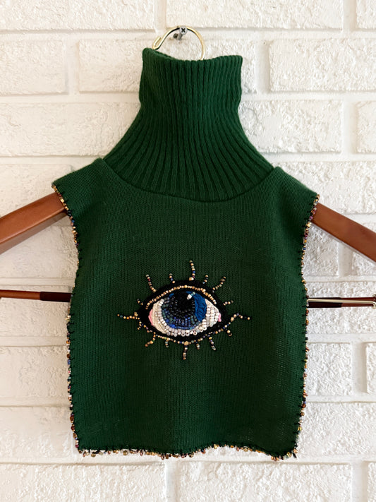1970's Knit Dickie Remade With Hand Beaded Eye