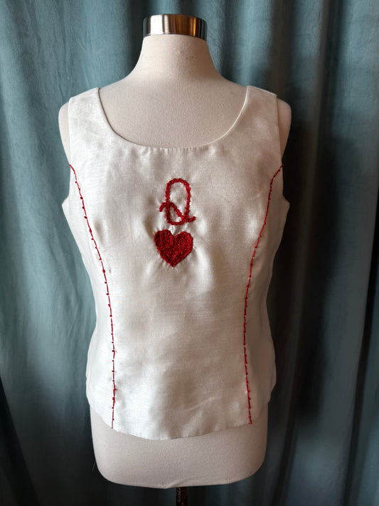 1980's Le Suit Cami Remade with Hand Embroidered Queen of Hearts